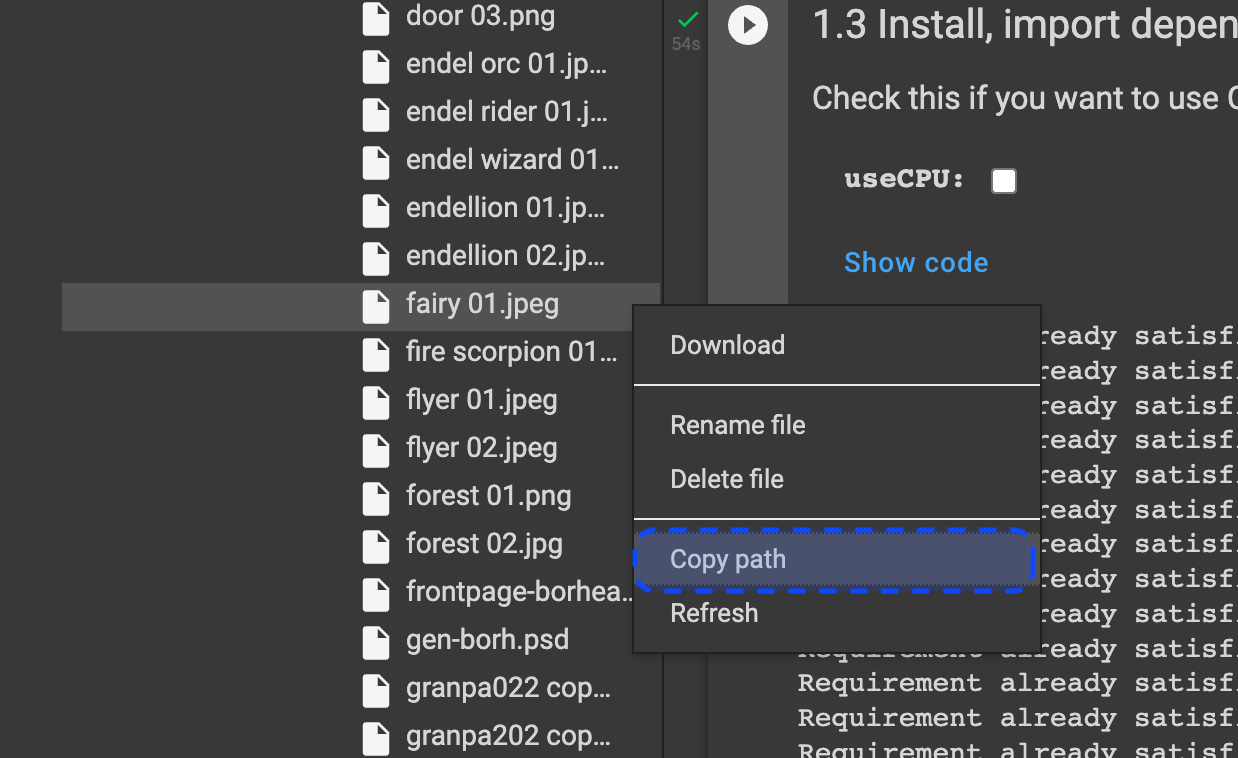 Once you have located the image you want to use as the initial image, click on the three vertical dots icon and then, click on 'Copy path'.