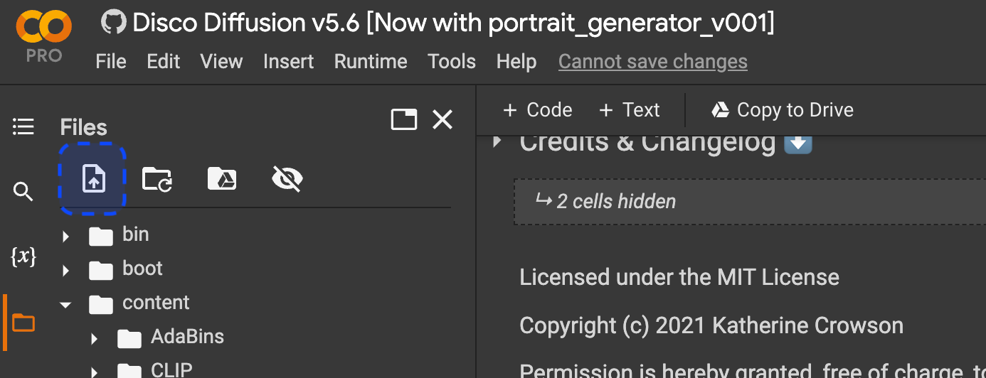 2 - Once you have connected the tool with your Drive (1.2 Prepare Folders), on the left hand side (where the folders are) locate the image in the init_images folder: (content>drive>MyDrive>AI>Disco_Diffusion>init_images).